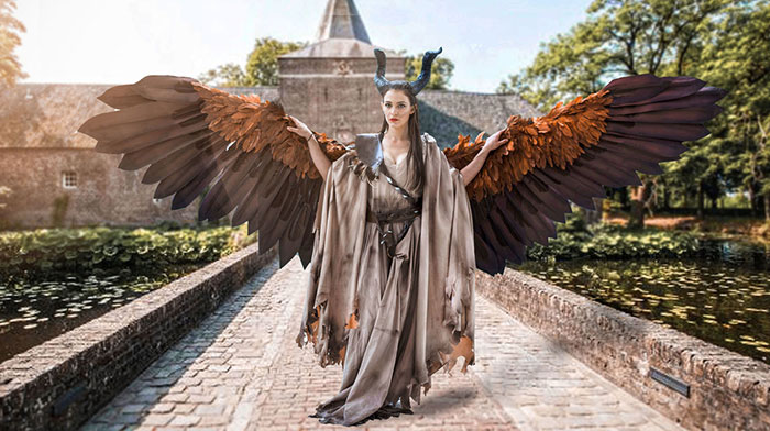 ▼2014年上映的《黑魔女:沉睡魔咒》,由好萊塢知名演員安潔莉娜裘莉(Angelina Jolie)主演。Drisana Litke還原的就是她飾演的「黑魔女」梅菲瑟。