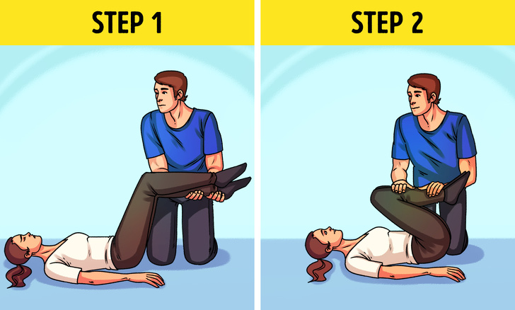 如果你要喚醒某人的意識,可以舉起他的膝蓋,並緩緩推向胸前。這會讓血液回流到大腦,幫助他們醒來。但注意,再採取這個動作前,必須確定他們的身體沒有任何外傷。