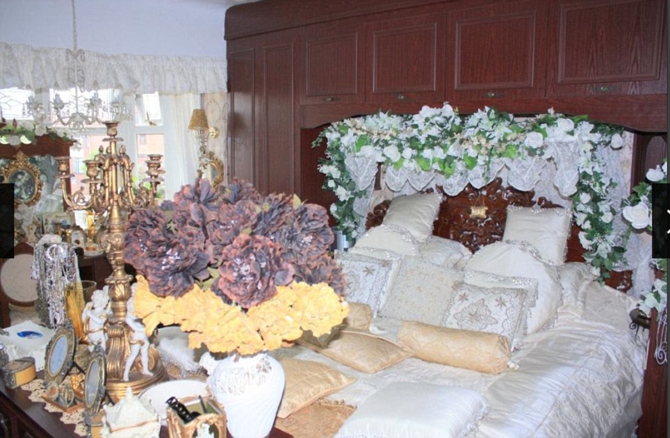 ▼同色調的花朵和晶瑩的水晶,增添了高雅的氣息,但是在這個小小的空間中這種佈置,讓住在裡面的人幾乎沒有活動的空間了。