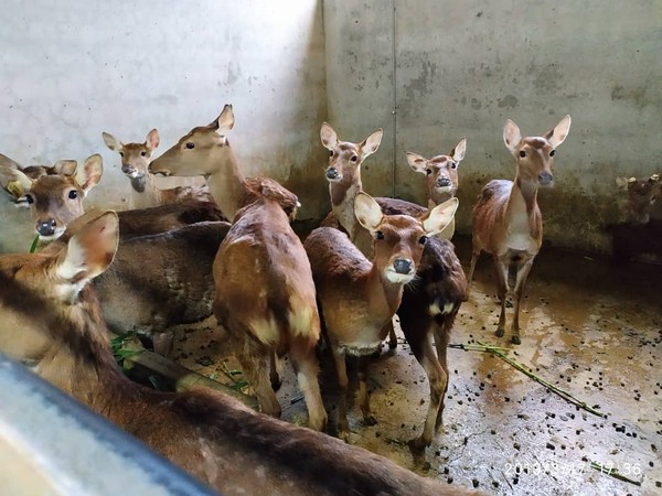 ▼一走進飼養區,就會看到許多小鹿睜著大眼睛到處看,一瞬間就被這群萌萌大眼的小鹿給擄獲了心!場主表示,公鹿性格好鬥會互鬥,所以牠們一鹿一間住在約3坪的「公鹿房」。