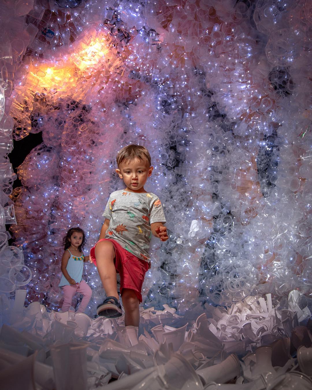 ▼志願者花費了一天半的時間收集了18000個塑膠杯,並用28小時將它們清理乾淨。他們將這些塑膠杯打造成了一個水晶洞穴,在這裡可以拍出閃亮的照片,並且喚醒全世界人的環保意識。