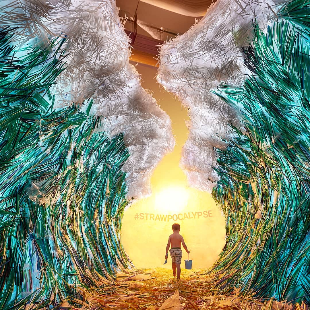 ▼班傑明想要通過這組照片,讓大家看到海洋中隱藏著多少塑膠垃圾,他希望這個作品可以鼓勵人們不要再使用塑膠吸管。