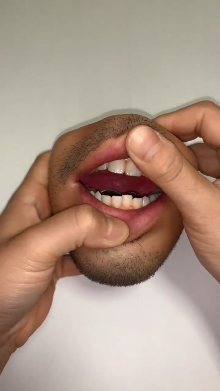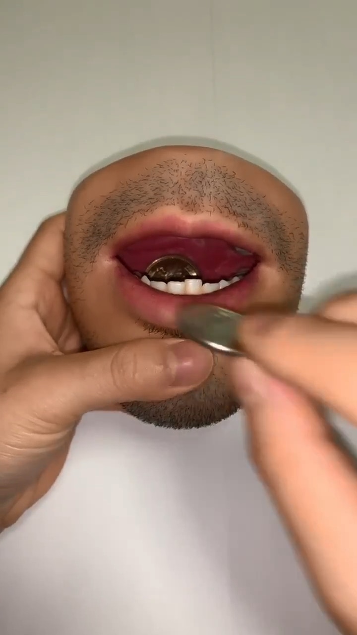 ▼「doooo」將零錢包的「嘴唇」翻起來,裡面是不太整齊的牙齒,還能看到牙齦。