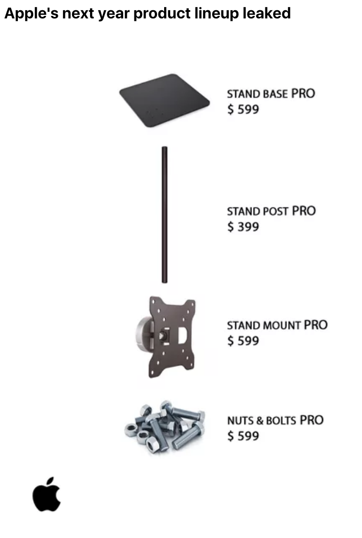 ▼連果迷也傻眼的就是這個螢幕支架,竟然要價999美元(約新台幣31000元)!
