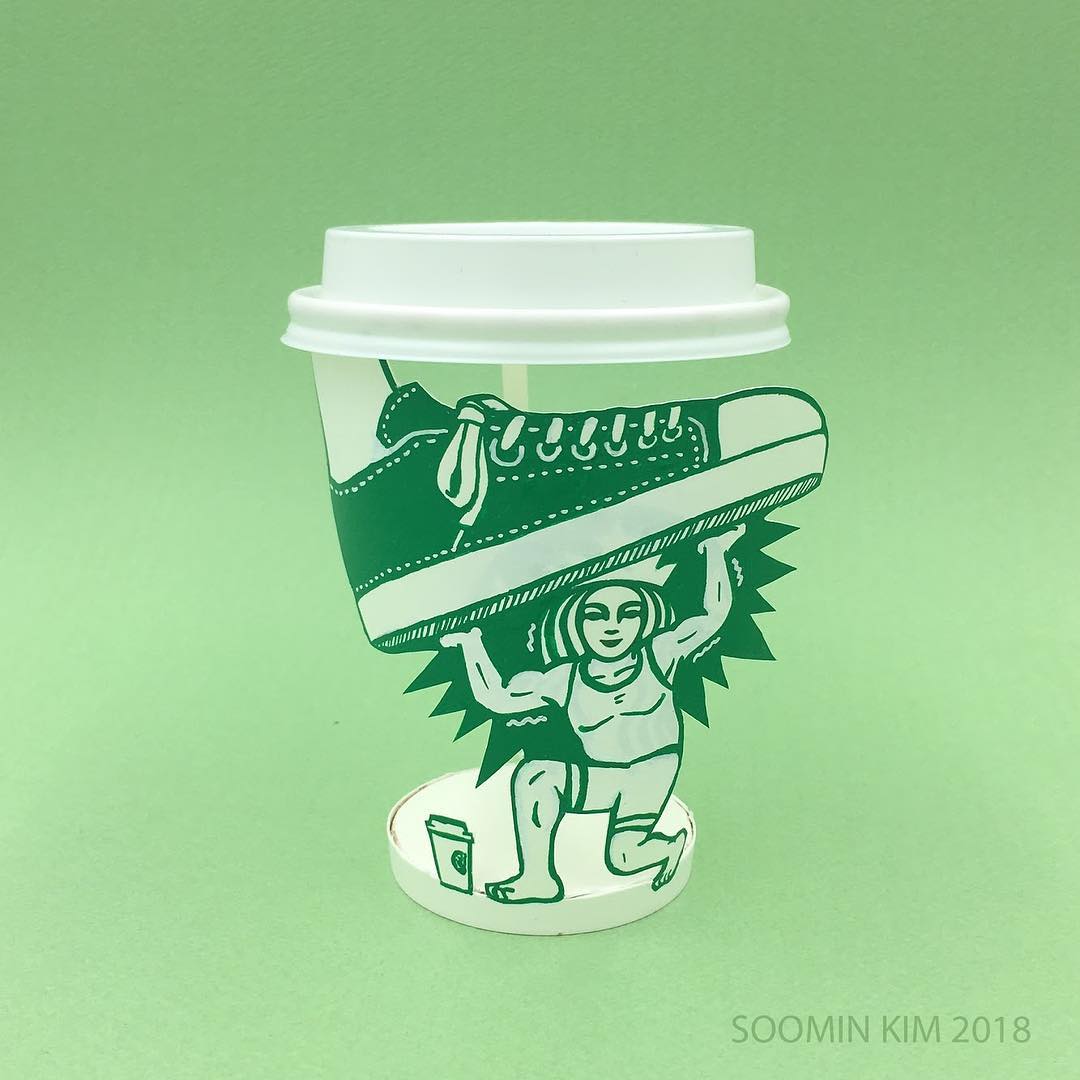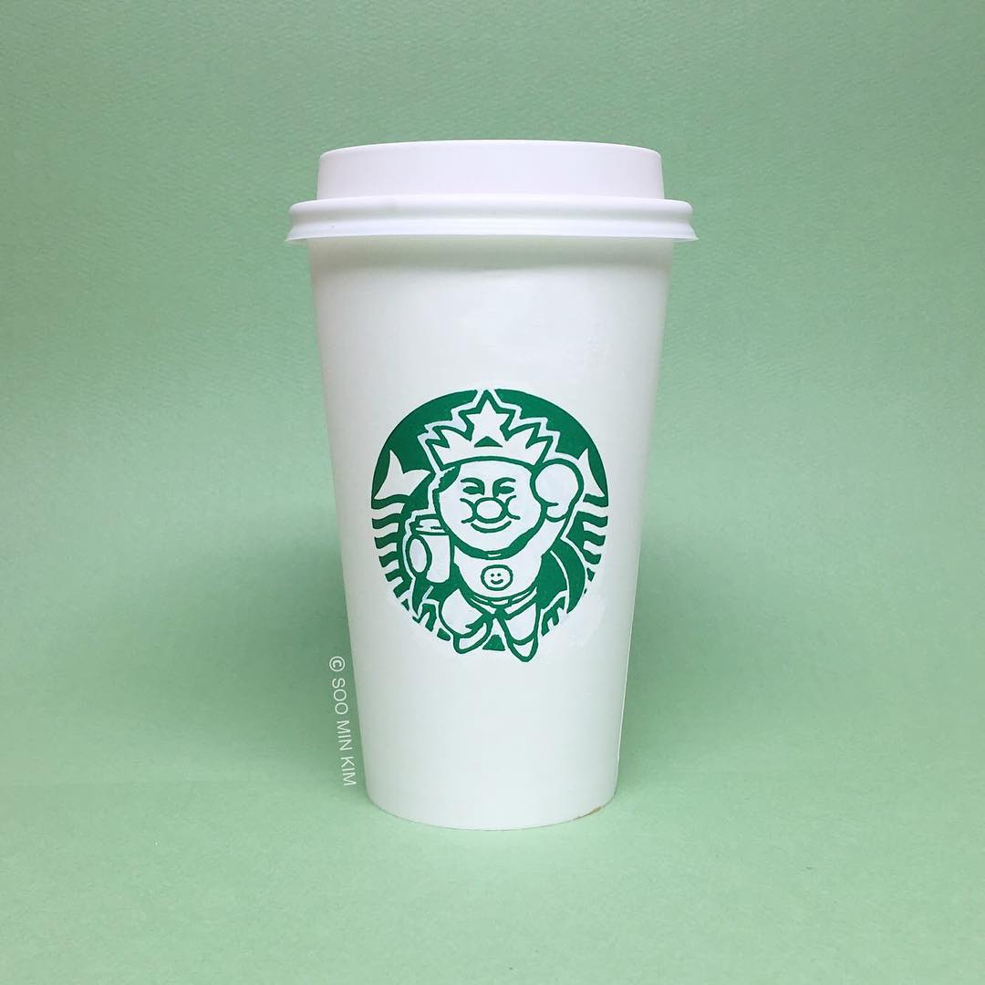 ▼韓國畫家Soo Min Kim會在星巴克的標誌上塗上一層白色顏料,接著使用綠色畫筆加工成不同模樣。變得生活化的美人魚,真的很有趣呢!