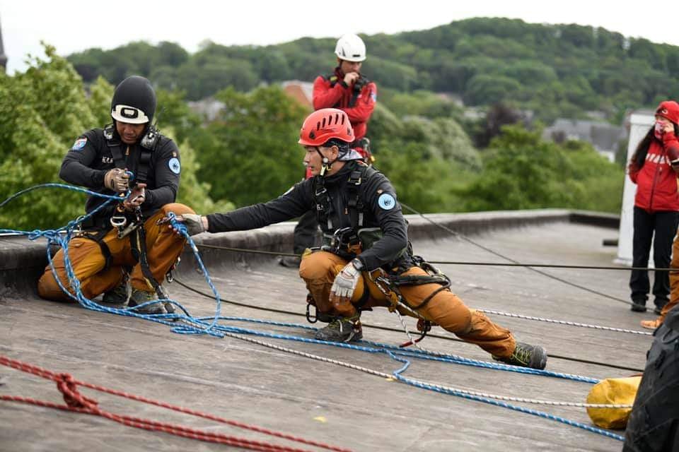 ▼高雄繩索救援隊KRRT,今年遠赴比利時參加GRIMPDAY賽事,GRIMPDAY是比利時消防隊員發起的繩索救援比賽,舉辦至今是第13年,參賽隊伍有台灣、美國、英國、加拿大、法國、德國等等超過15個國家,隊伍數量共計30隊,可說是全球規模最大的賽事,相當於繩索救援的奧運。