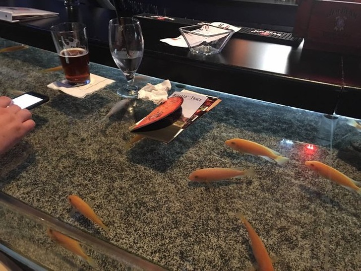 ▼12.吧台和水族館的結合。