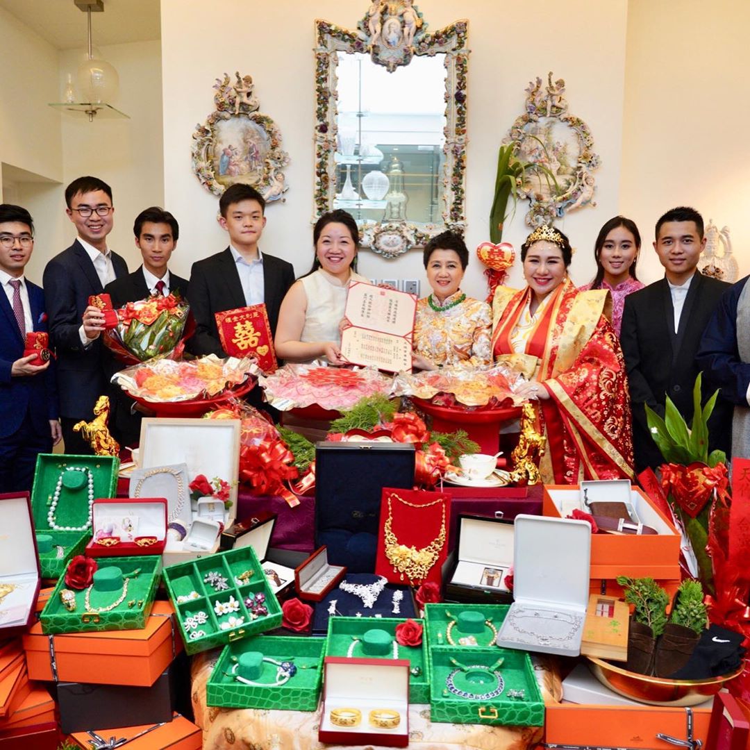 2019年06月11日賭王何鴻燊,大家不陌生吧?他身家數以百億計,娶了4位太太,一共有17個子女。6月7日,何鴻燊四房長女何超盈訂婚了。她與哈佛大學生老公辛奇隆(Thomas Xin)按照傳統習俗舉行過大禮儀式,場面非常奢華,滿屋子的金銀珠寶超震撼。