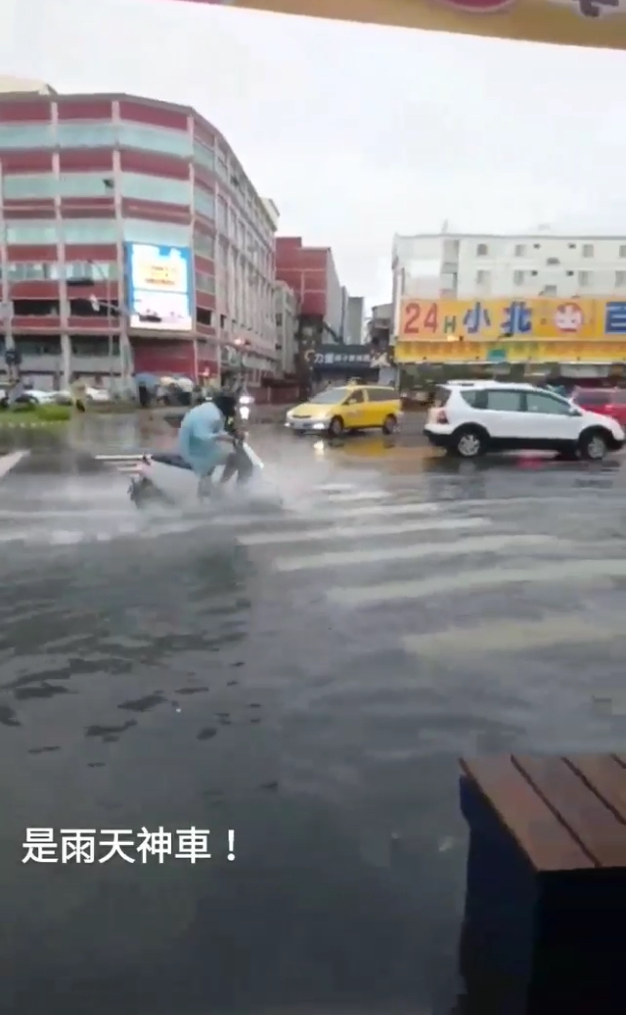 ▼淹水情況出現,機車不是不敢發動就是發不動,但依然有勇士勇往直前,無所畏懼。