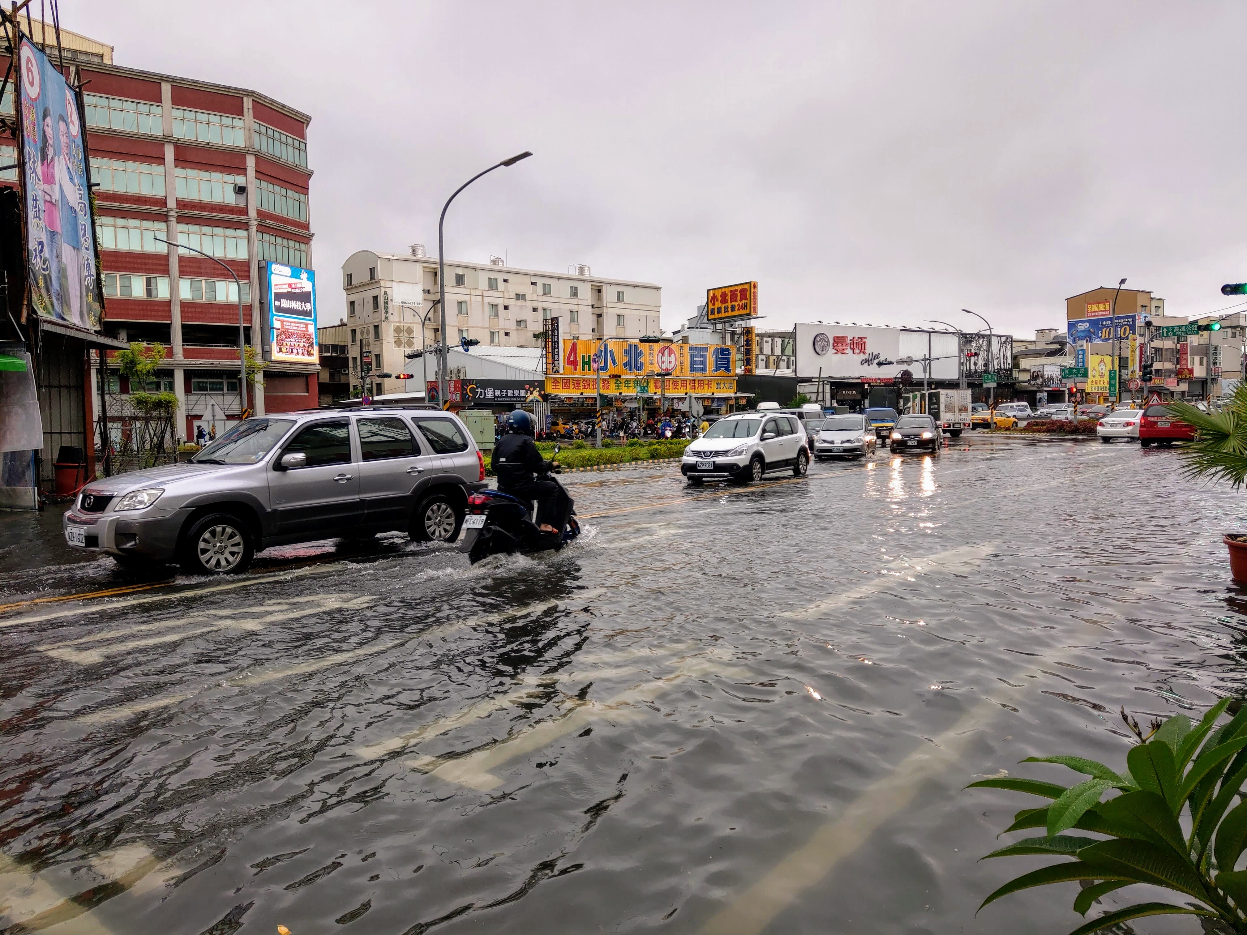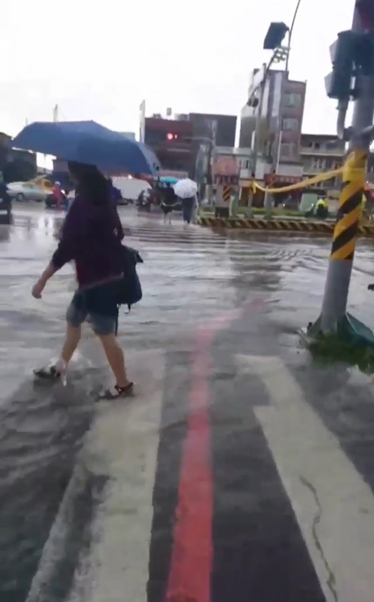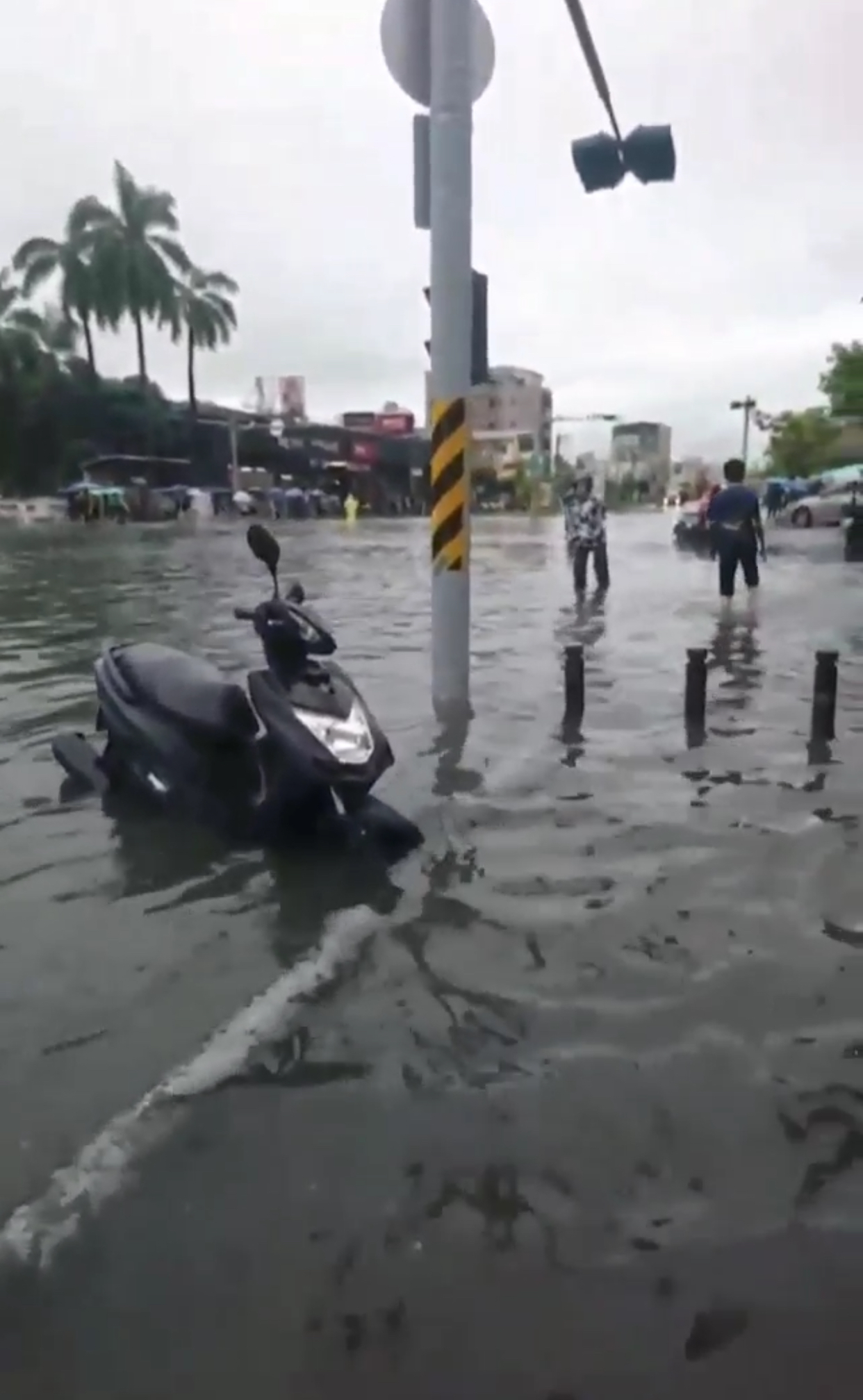 ▼除了校園淹水之外,校外的崑大路與大灣路也是淹水路段,還有網友開玩笑因應端午節可以舉辦「端午龍舟競賽 崑山盃」。