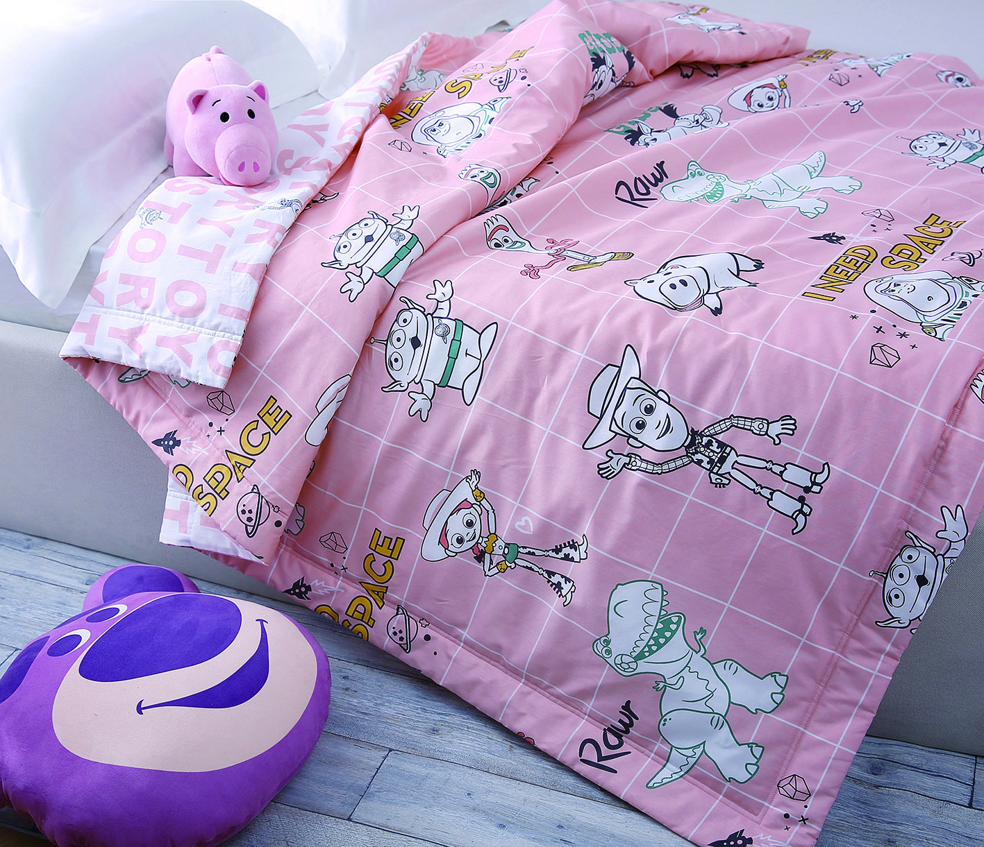 ▼這次的主打商品肯定就是這一套床被組了!包含2個枕套、1個床包跟1個超可愛的被套,一次擁有包含胡迪、巴斯光年、翠絲等要角,還有一大群超人氣的三眼怪,誰捨得離開這張床啊!