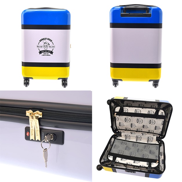 ▼登機箱:採用了唐老鴨經典配色的登機箱,亮眼的外表讓你絕對不會拿錯,海關鎖與隔板夾層一應俱全,符合航空手提行李的規定尺寸,非常適合短程的旅途!
