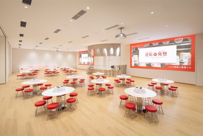 ▼透過40個大型螢幕,能夠看到日清工廠內一分鐘生產四百份杯麵的過程。工廠開放給當地學校團體企業參觀,應該是很新奇的體驗。