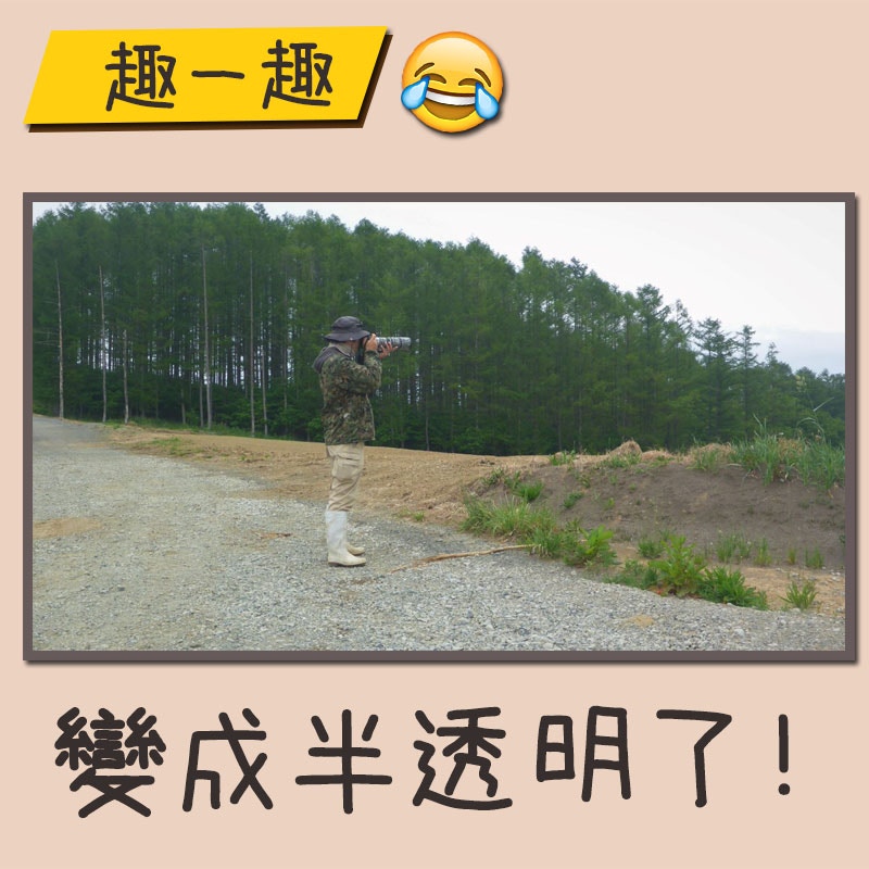 ▼日本一名男子到野外攝影時,衣服與背景完美融合,整個人就像變成了半透明一樣。他在拍風景,卻不知自己已經成為了別人鏡頭下的風景。