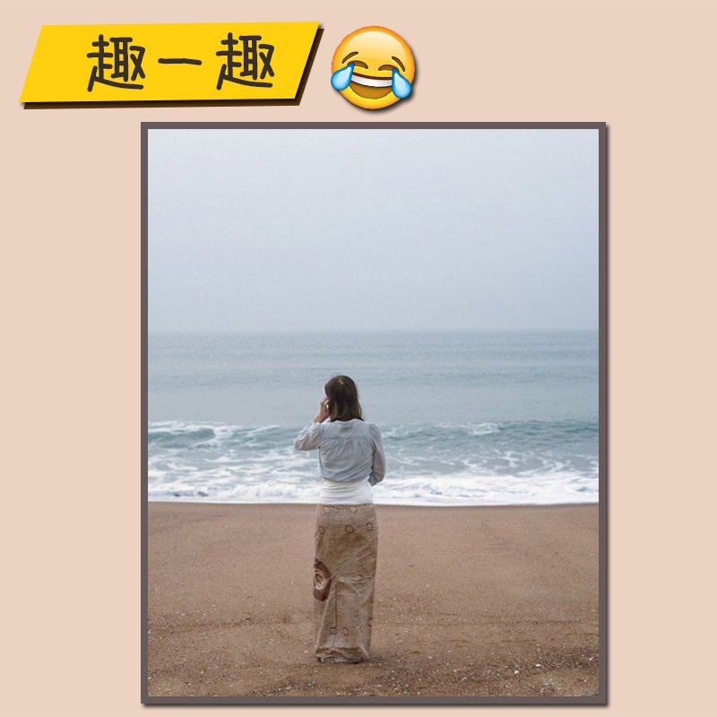 ▼這位女孩打扮得漂漂亮亮去海邊,沒想到自己竟與海灘撞衫。