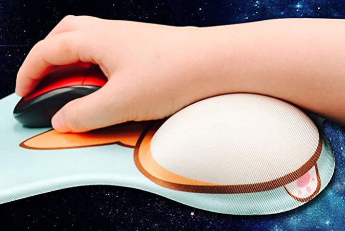 ▼這款滑鼠墊整體造型是柯基的背影,圓滾滾的屁屁部分採用硅膠材料,摸起來軟軟的,還很Q,把手腕放上去超舒服。