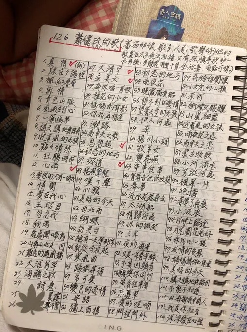 ▼就連爺爺那個年代的明星和歌曲,也都在爺爺的手寫筆記當中。