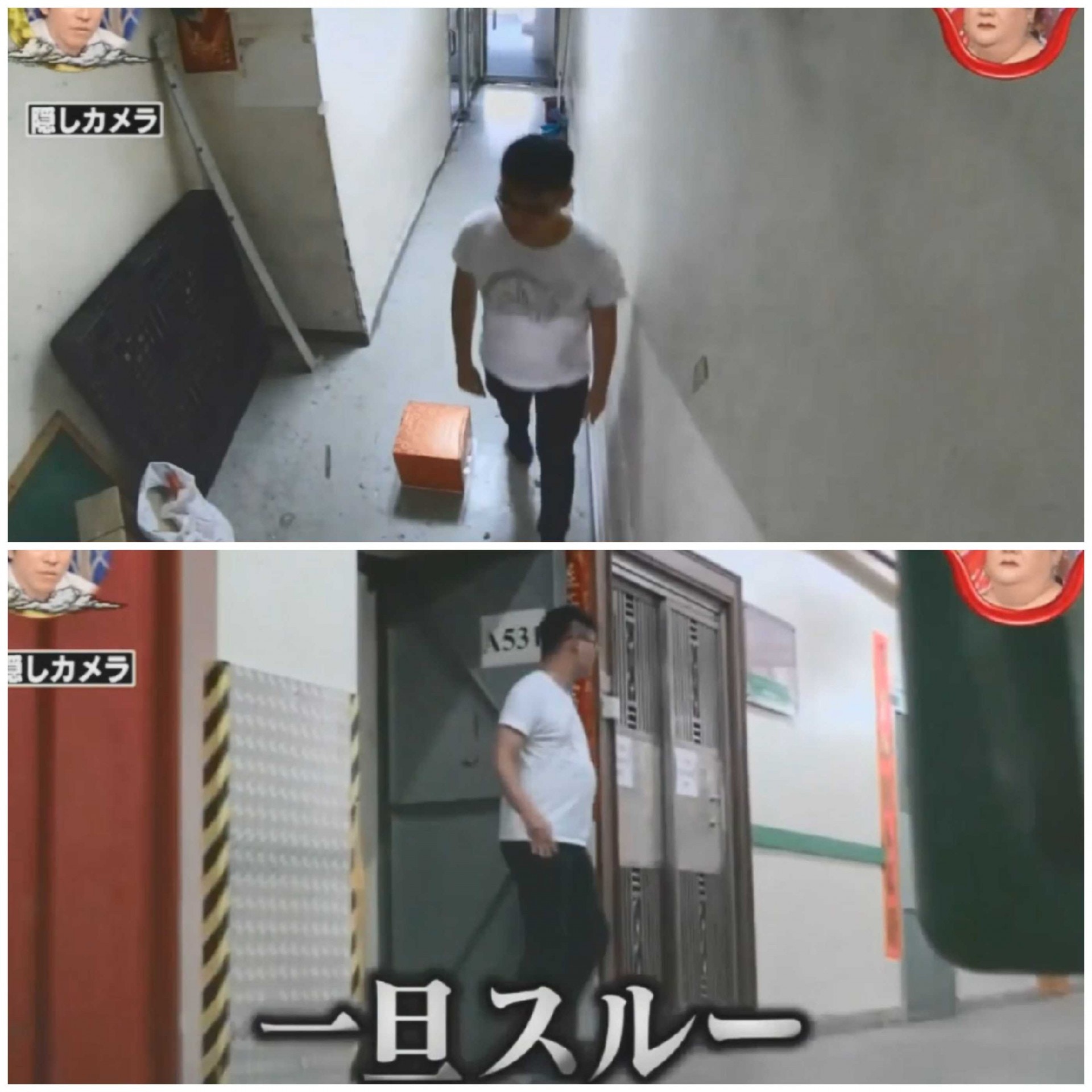 ▼他們將盒子放在走廊中央,敲門後馬上躲起來,等著男生出來。