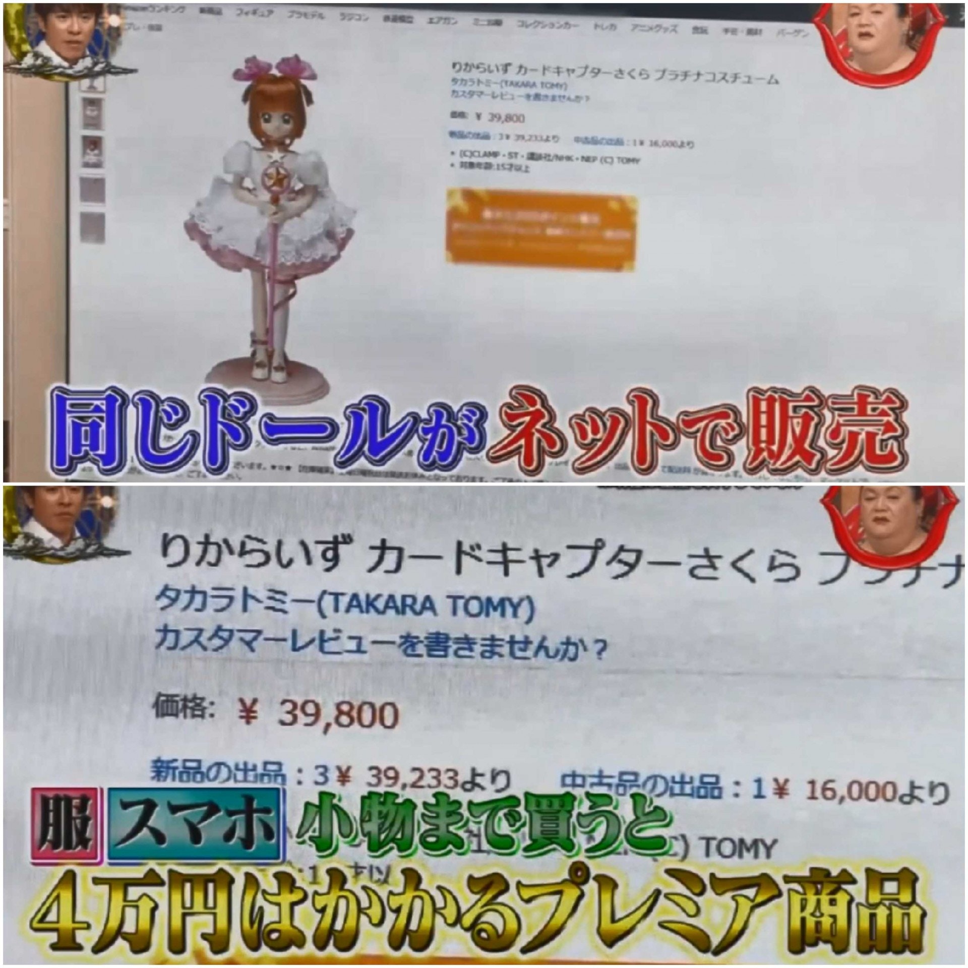 ▼日本電視台節目「月曜夜未央」得知這件事後,決定伸出援手。他們先從網上找了一下同款的人偶,買一個一模一樣、帶有各種附件的百變小櫻人偶,大概要花4萬日圓(約台幣11,579元)。