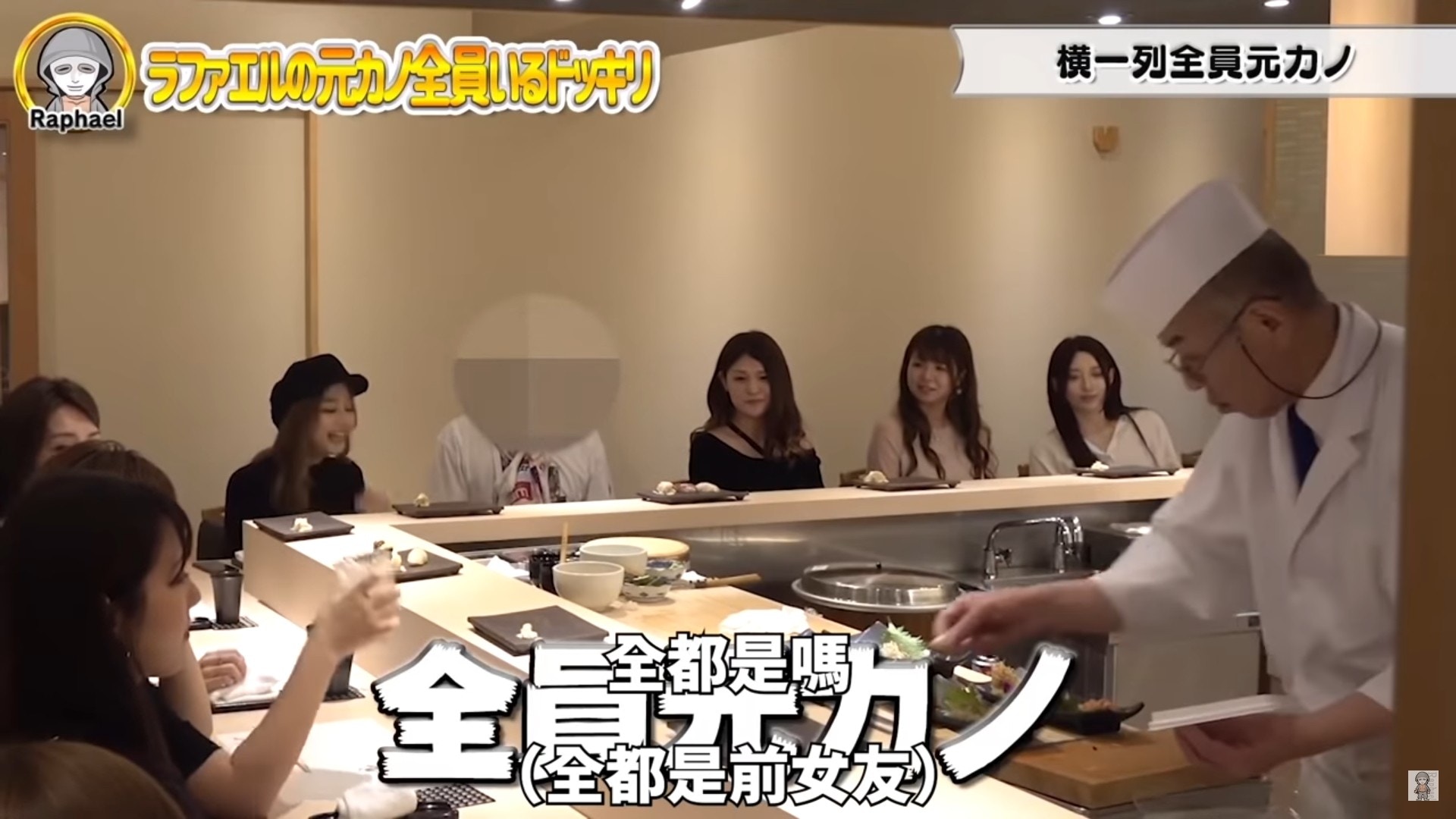▼拉斐爾的拍攝夥伴為了吸引點閱率,想出了這個令人超尷尬的企劃,安排了多位曾經與拉斐爾交往過的前女友來到這家餐廳,等待拉斐爾帶著現任女友出現在這家高級壽司店,想要看他會如何應對這史詩級的尷尬場面!