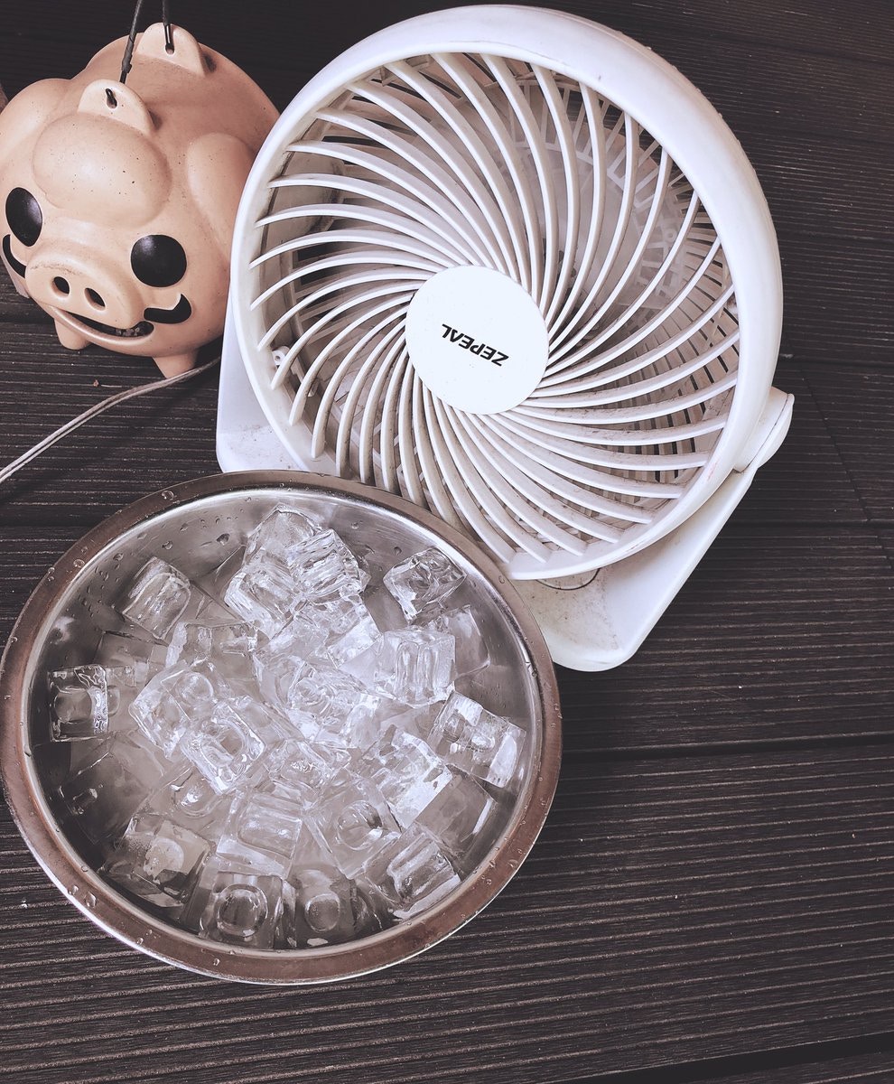 ▼5.在風扇前放冰水:在淺淺的容器中放一些冰,再放到電風扇的前面。水能吸收周圍的熱力,有助於降溫,風扇吹出來的風也會涼涼的。