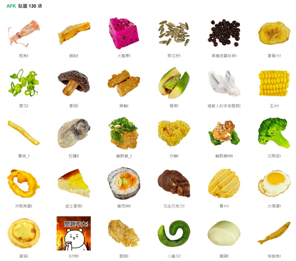▼而推出這款貼圖的作者「AFK」,在之前也推出過許多各種「有趣」的食物貼圖,有興趣的話可以自己去搜尋!