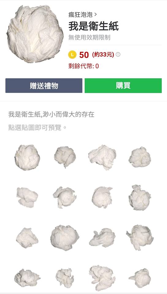 ▼這款「我是衛生紙」貼圖完全意義不明,卻可以順利通過審核上架銷售,而且銷量竟然還不錯,讓許多網友都摸不著頭腦。