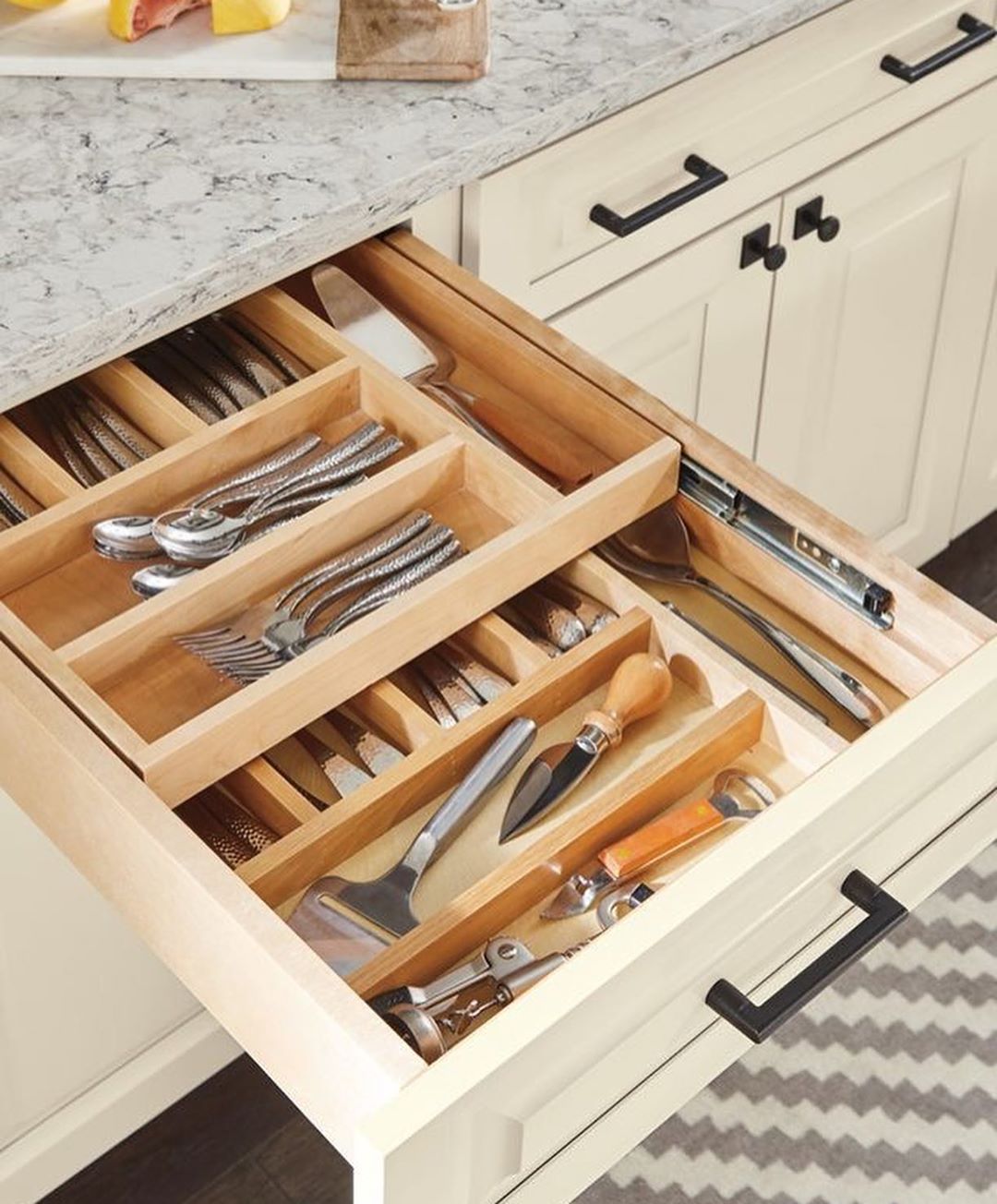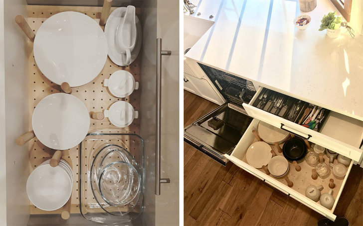 ▼在抽屜上方做一個夾層,就能夠充分利用這裡的空間。