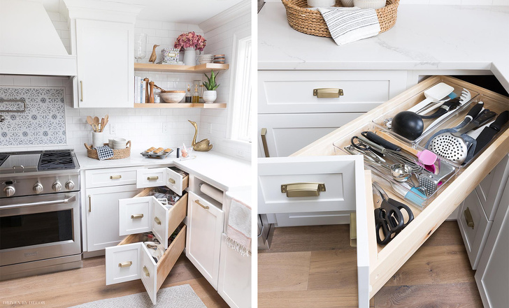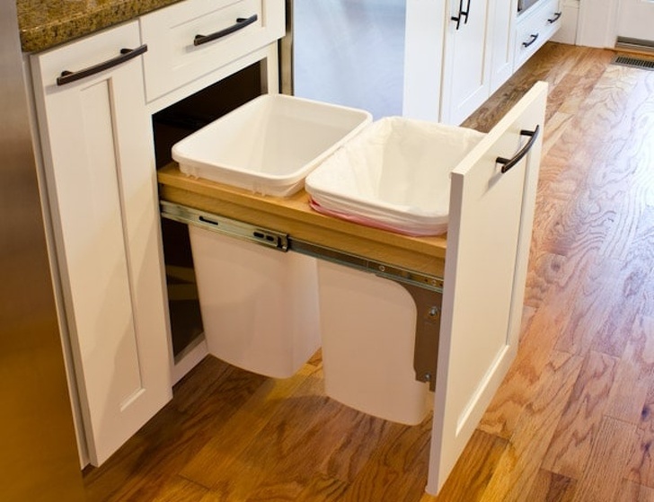 ▼將垃圾桶隱藏在櫃子裡,讓廚房更加乾淨、整潔!