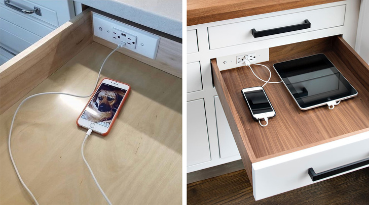 ▼在廚房的抽屜內準備插座,方便為3C用品充電。