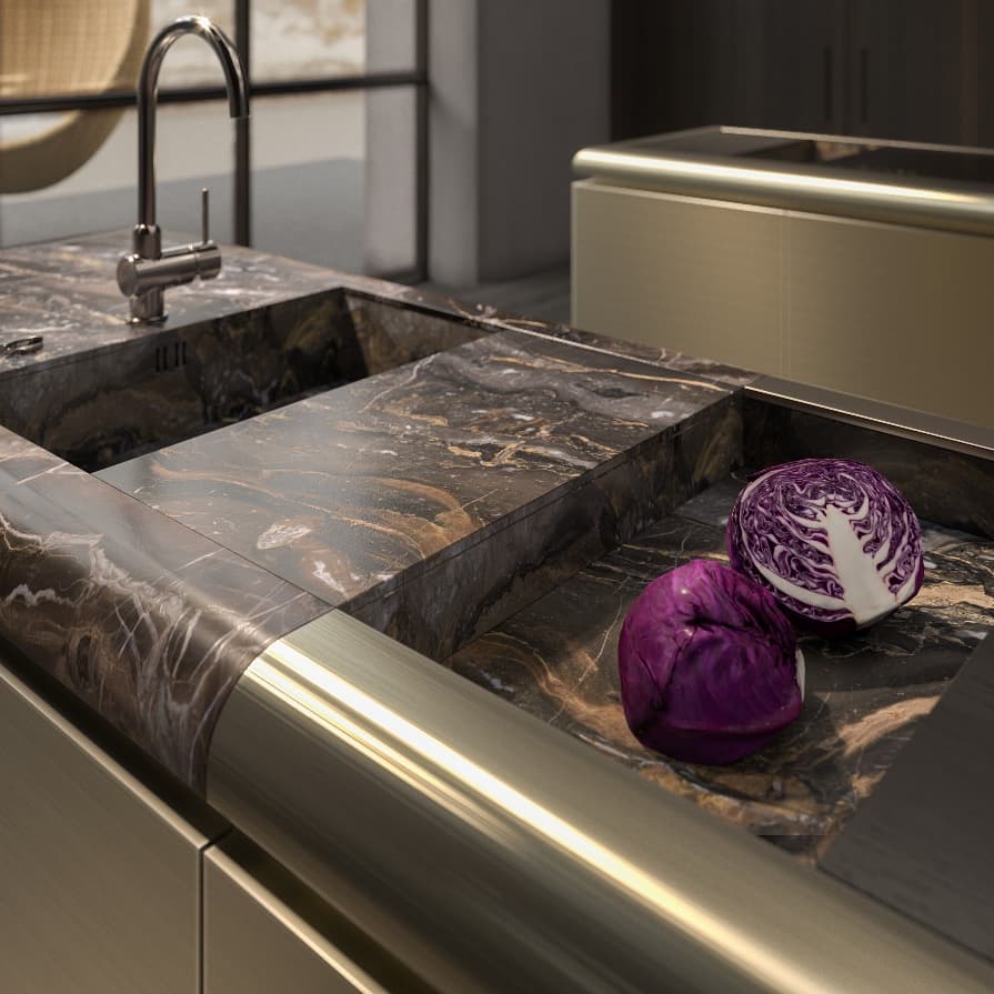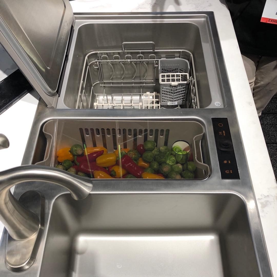 ▼在洗手台旁邊準備一個較低的區域,用來清洗蔬果非常方便。