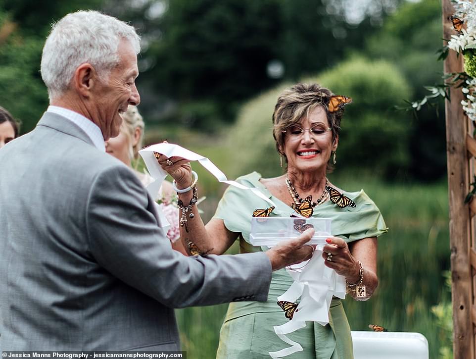 ▼新郎Max Van Gorder一家一直堅信,人往生後會化作蝴蝶回來探望親人。所以他們特別準備了一些蝴蝶,想在婚禮上放飛。