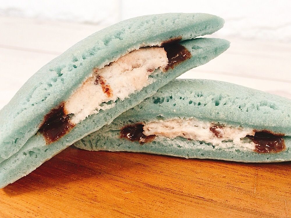 ▼薄荷巧克力銅鑼燒:接下來就進入到吃的領域啦。傳統的銅鑼燒是鬆餅中夾著紅豆餡,而日本全家推出的這款薄荷巧克力銅鑼燒,不但內餡變成超香濃的薄荷奶油,連麵糊都加入了薄荷巧克力進去烤製,整體充滿了薄荷的香氣。