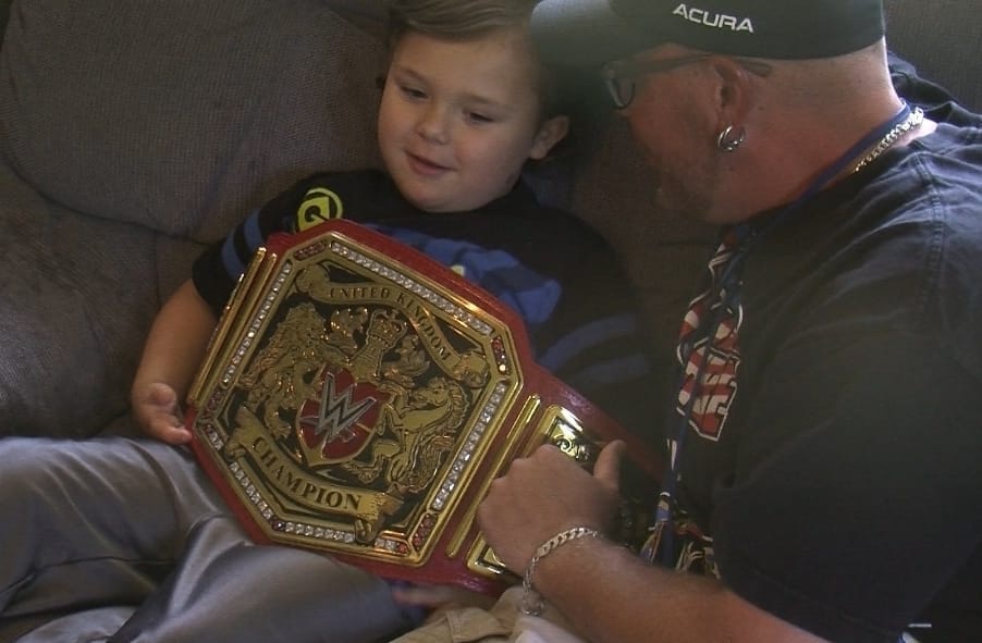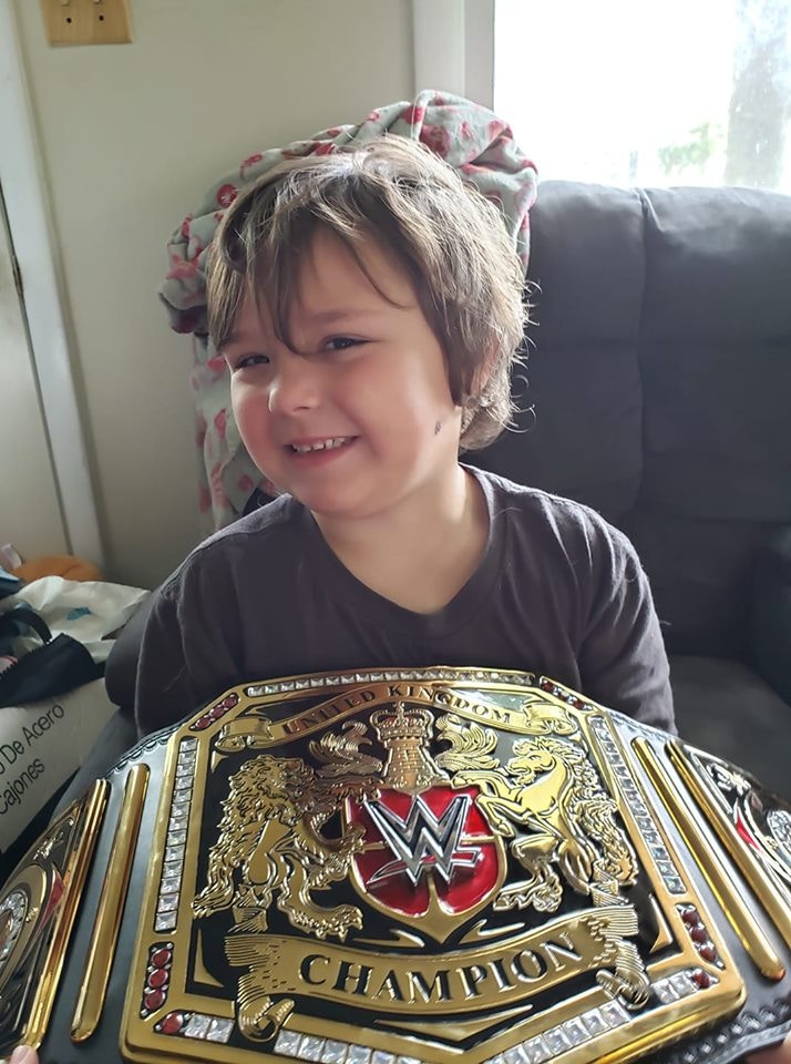 ▼美國設計師莫雷拉(Sergio Moreira)在臉書上表示,他受到一名爸爸的委託,要為對方5歲患有自閉又有腦瘤的兒子提米(Timmy Vick)修改一條 WWE 世界摔跤聯盟的腰帶,原來提米非常喜歡看 WWE,希望能夠送給兒子作為打氣的禮物。