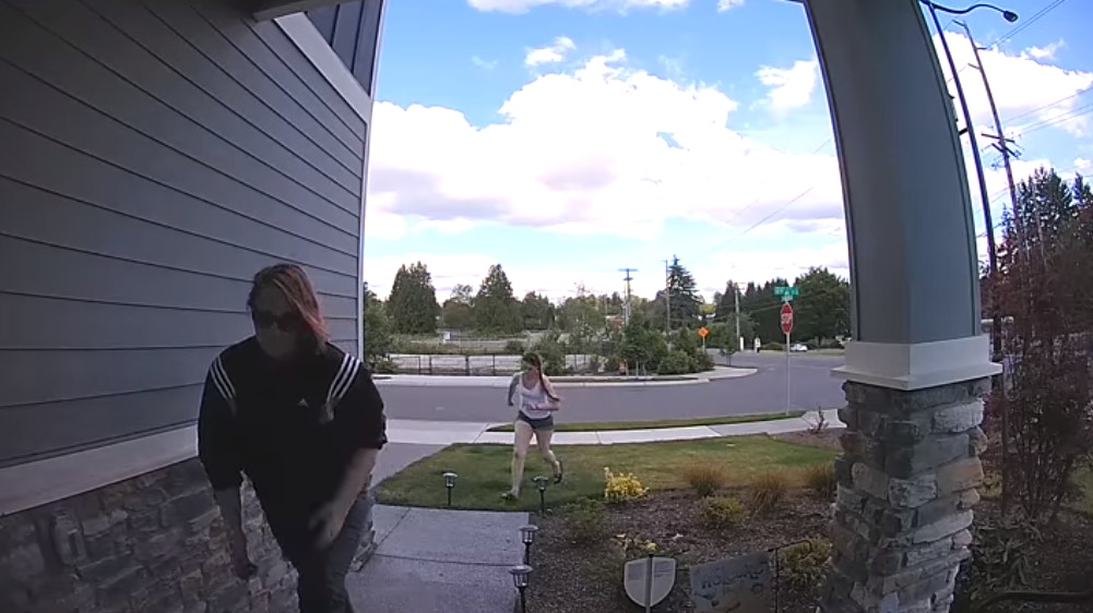 ▼當時兩位女子走到他的家門口,將門口放著的包裹全都搬走了。