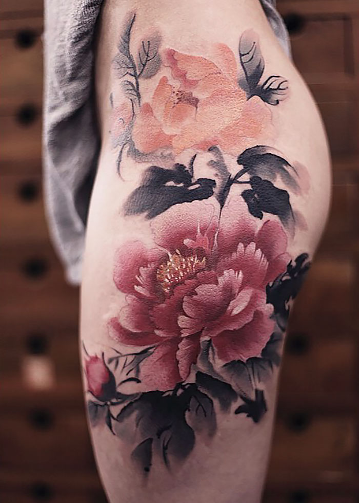 ▼陳潔在北京三里屯開了一間刺青店「newtattoo」。她經常將自己的刺青作品po到網路上供大家欣賞。這些刺青作品包括花鳥魚蟲、山水林石,每一幅都讓人驚艷。
