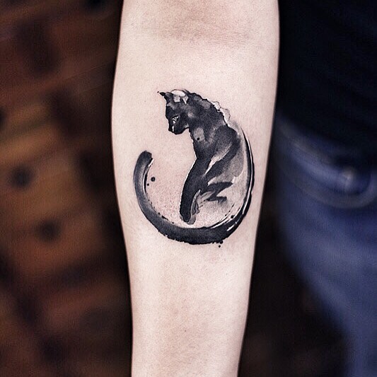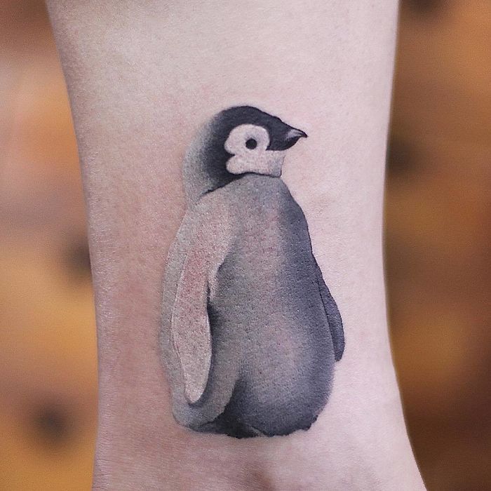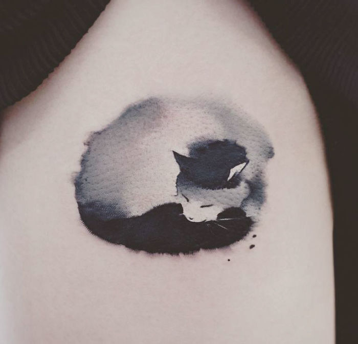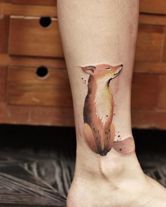 ▼陳潔風格多變,這種可愛的刺青也是信手拈來。原本就很可愛的動物加入水墨畫的效果,顯得很有質感。