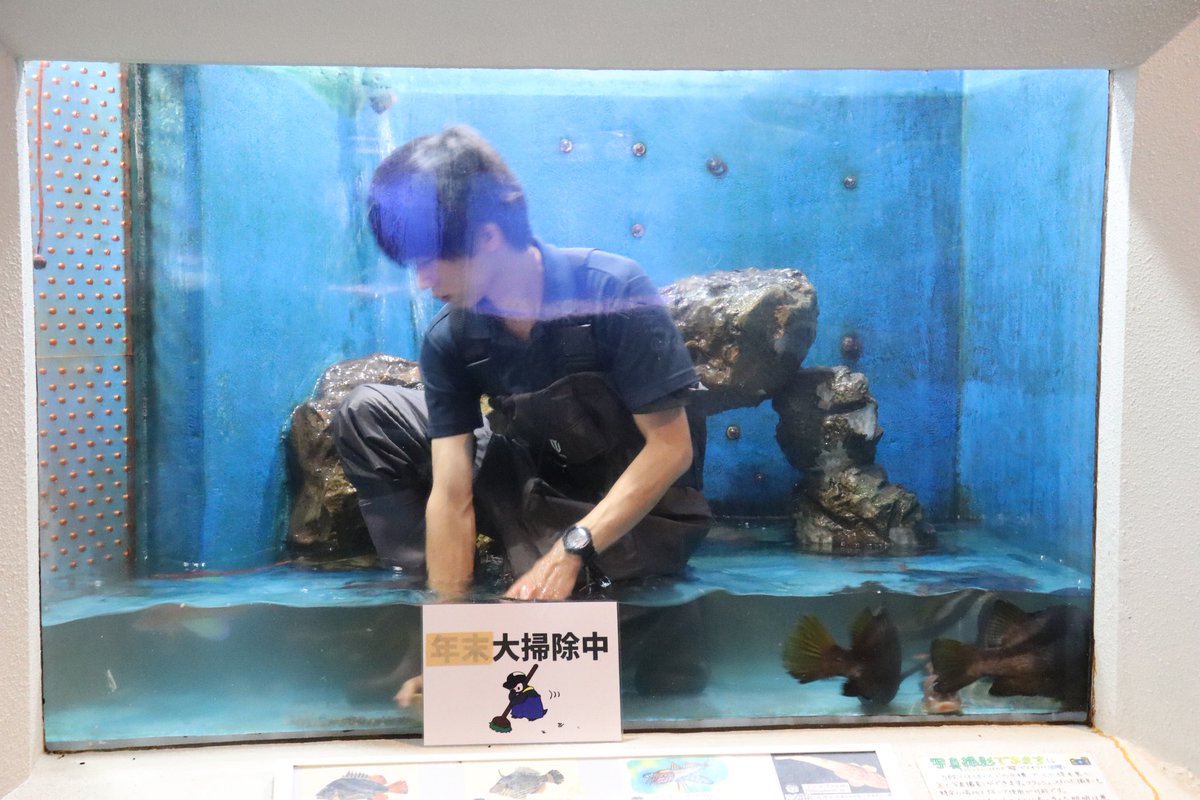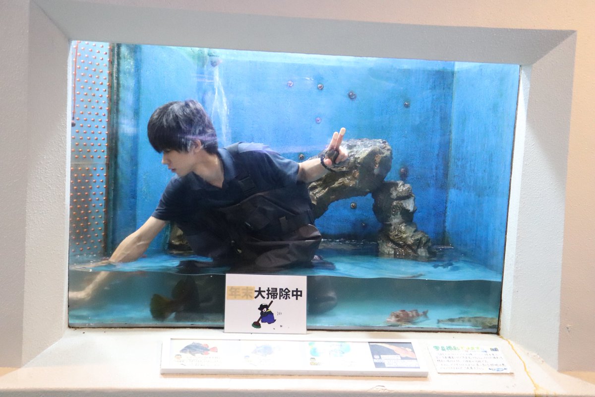 ▼水族館在推特上po文說:「有時會以這樣的形式在水池中展出帥哥(打掃中)。」