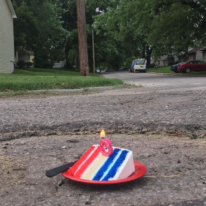 美國密蘇里州堪薩斯城(Kansas City)男子Frank Sereno非常苦惱。他家附近的路面坑坑窪窪,凹凸不平,一下雨就積水,附近的居民都感覺很不方便。Frank曾向市政府投訴,但幾個月過去都沒得到回應。他乾脆苦中作樂,給路面上的坑洞慶祝生日。