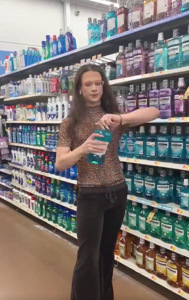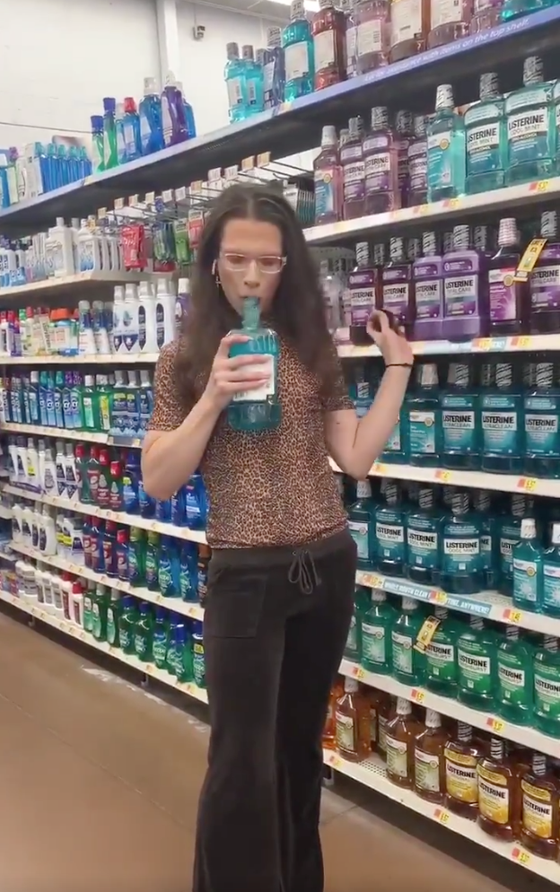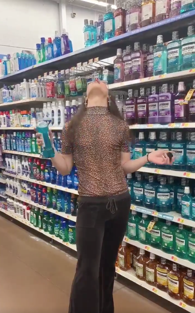 ▼一位名為「Bameron Nicole Smith」的網友在推特上傳了一部影片,他在逛沃爾瑪賣場時,說道:「女孩,這是一個發霉的糟糕早晨。」直接到架上拿了一罐漱口水開始漱口。