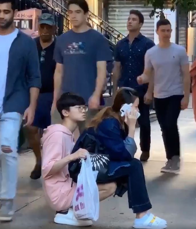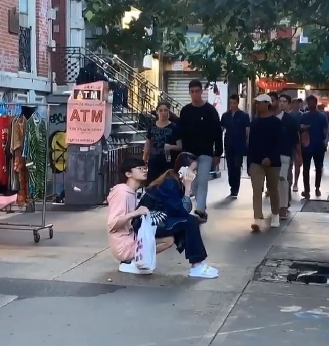2019年07月08日很多墜入愛河的情侶會把自己的熱情一股腦全部投入進去,心甘情願為對方付出全部。紐約街頭的一對情侶就引起了網友們的關注。只見一名男生在路上蹲下,讓女友坐在自己的腿上講電話。不少網友不理解這種行為,甚至說:「他根本是工具人。」