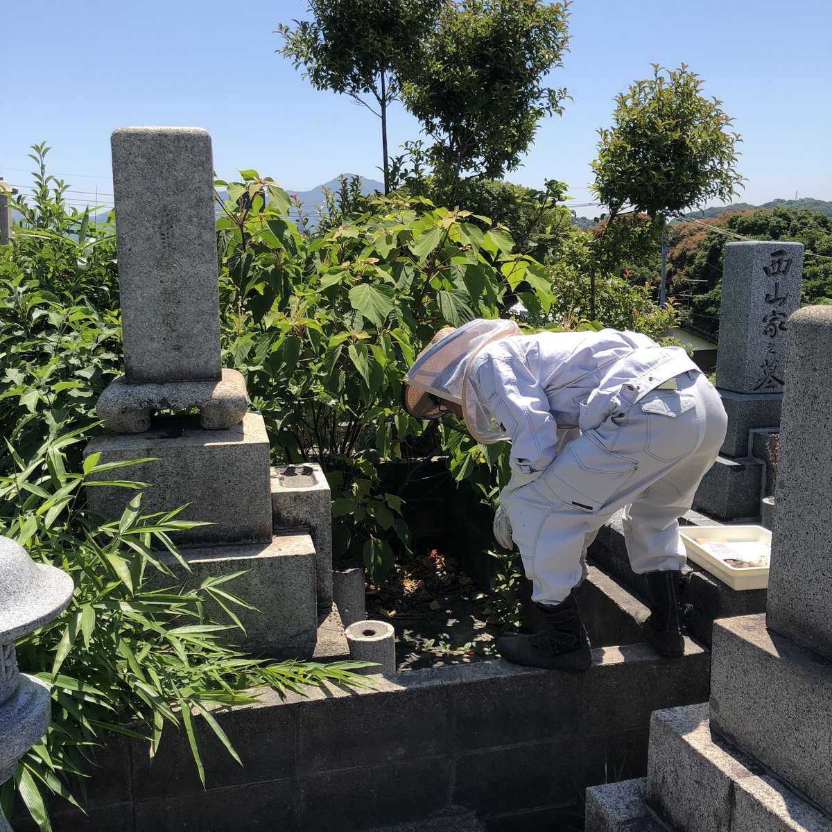 ▼日本九州「永明寺」的墓園出現大量蜜蜂,讓參拜民眾擔驚受怕,因此告知住持,希望廟方解決。無計可施的住持只好上推特訴苦,卻被網友點出那是珍貴的原生種「日本蜜蜂」,後來更有養蜂專家自告奮勇幫忙處理。