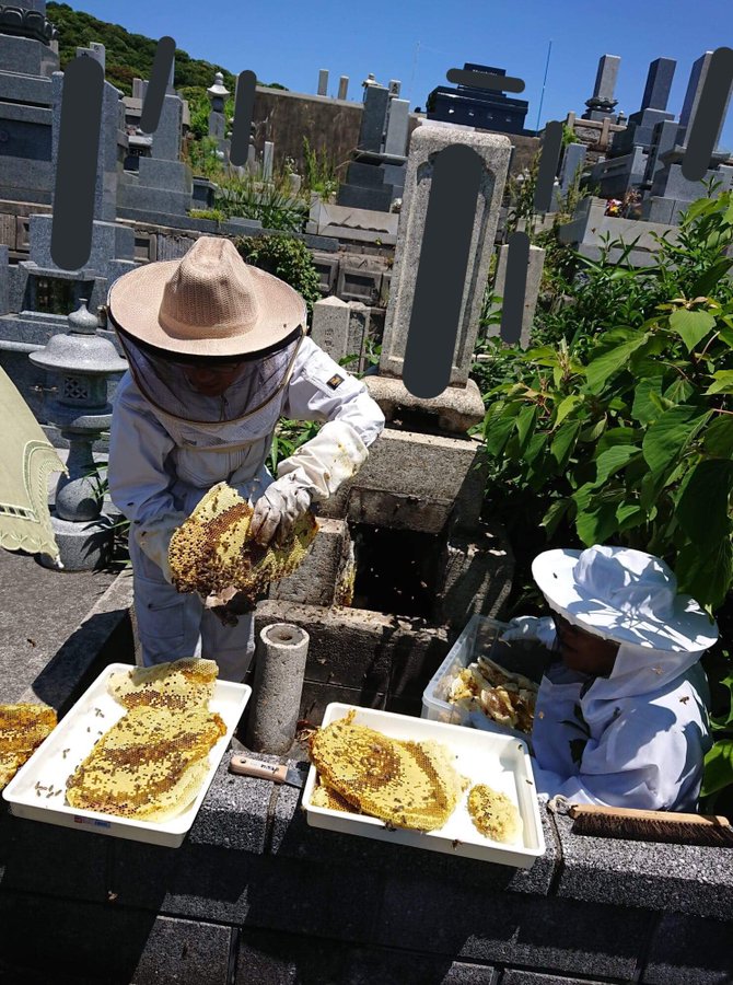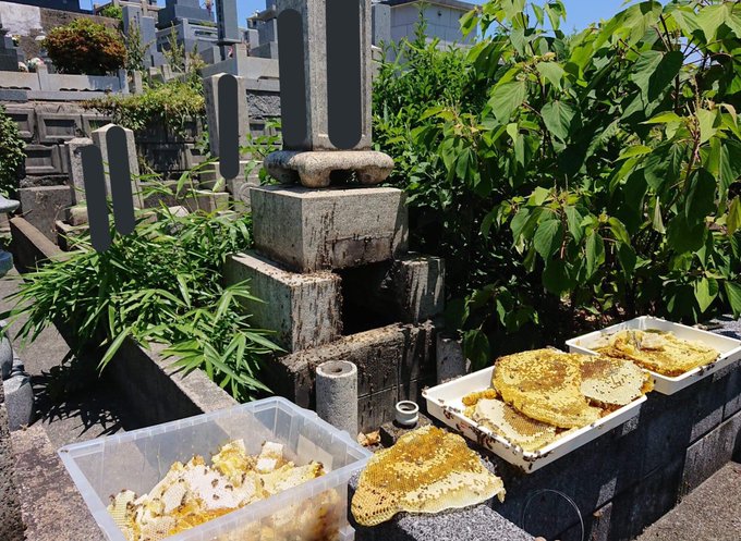 2019年07月08日日本一處寺廟的墓園近來有大量蜜蜂出沒,讓參拜的人不堪其擾,紛紛向該寺廟住持上報,希望住持能夠解決。但住持畢竟是和尚、不是蜜蜂系的專業人士,在接到一連串投訴卻又無可奈何的情況下,只好上推特訴苦,引來養蜂專家注意、要為他解決問題,沒想到竟然挖出罕見「乳白色蜂巢」!