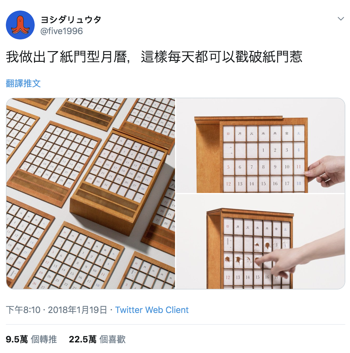 不用畫叉啦! 過一天就能戳「紙門月曆」根本每日最療癒
