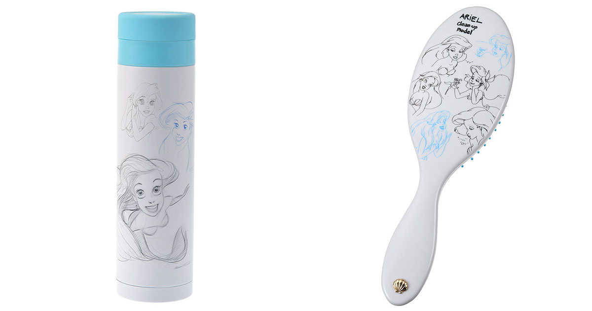 ▼因為小美人魚是迪士尼最後一部手繪的動畫作品,所以這次很多周邊都是用手繪風推出的。像這款梳子和不鏽鋼水壺,上面就是印著原稿,真的好好看啊!