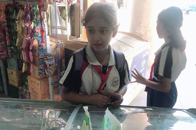這名小朋友眼睛又大又深邃,真的很漂亮,長大後應該也是個大美女吧。不過新疆的美女真的那麼多嗎?這顏值水平也太高啦~