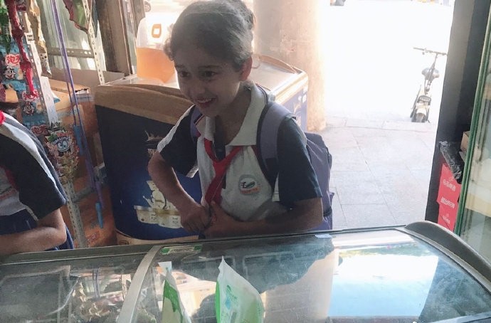 ▼這名小女孩綁著簡單的馬尾,穿著國小制服,濃眉大眼,非常漂亮。