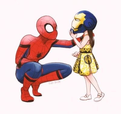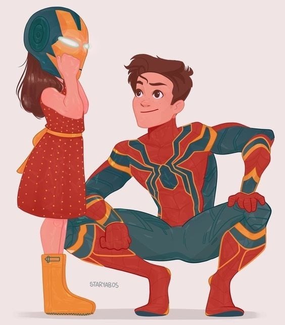 ▼鋼鐵人與蜘蛛人情同父子,小摩根又是鋼鐵人的親生女兒,蜘蛛人與小摩根都繼承了鋼鐵人的精神,根本就是一對互相扶持的兄妹啊。這對兄妹合體讓粉絲們超激動,還有大神將這一幕畫了出來。