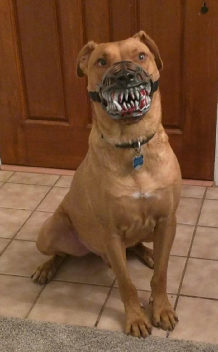 ▼戴上了這款嘴套之後,狗狗瞬間看起來就像是「惡靈古堡」裡面的怪物!