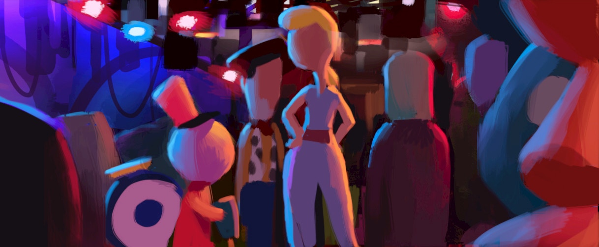 ▼美術:這一步驟主要是為影片的風格和色彩定調。美術人員John Lee製作的這幅美術概念圖,主要是為角色和背景進行的色彩和設計方面的探索。